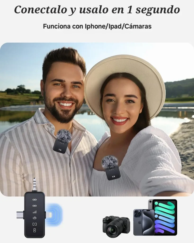 Con compatibilidad completa gracias a su receptor universal 3 en 1, olvídate de los cables y adaptadores. Funciona sin problemas con smartphones Android, iPhone (incluyendo el iPhone 15), iPad, laptops, PCs y cámaras. Este mini micrófono es tu aliado ideal para vlogs, entrevistas, transmisiones en vivo, blogs, podcasting, YouTube, Instagram y TikTok.